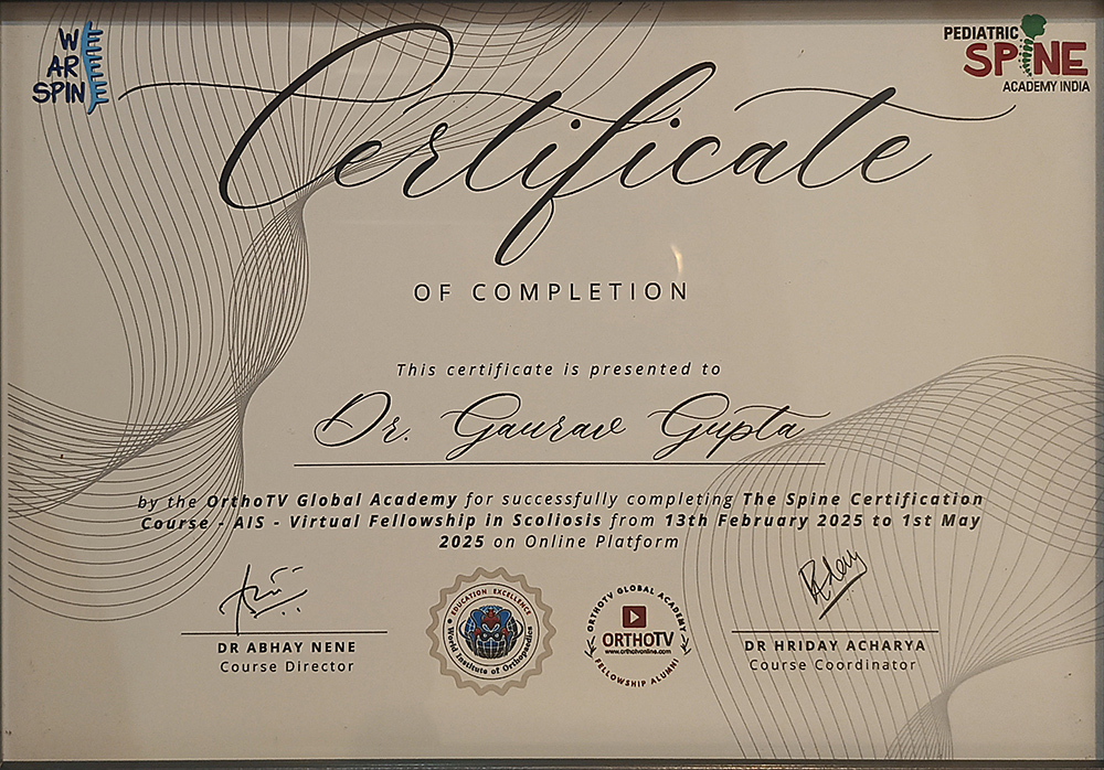 Dr. Gaurav Gupta is one of the most famous Paediatric Orthopaedic surgeon practising in Delhi & NCR. He is dedicated to providing specialised, compassionate care for children with bone and joint conditions, supporting healthy growth and mobility. His vast National & International exposure in paediatric orthopaedics has helped him in treating a wide array of kid's bone & musculoskeletal issues.